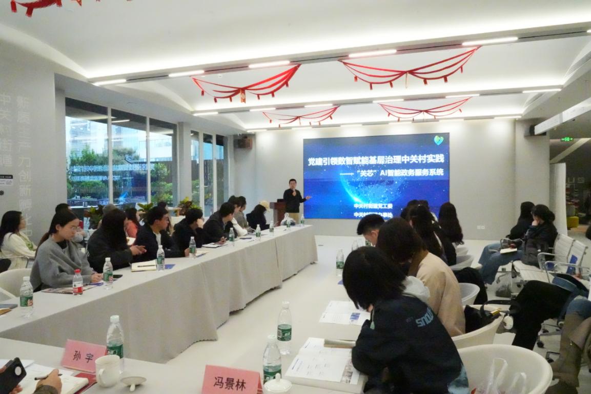 在座谈会上,中关村街道城市管理办公室副主任冯景林介绍并展示了“关芯”智能政务服务系统,这是海淀区首个街道级AI智能政务服务系统,包括居民端“关芯客服”、政务端“关芯助理”、精管端“关芯智巡”三个组成部分,通过将复杂问题简单化、简单问题标准化、标准问题系统化构建可记录、可评价的治理系统,实现了依靠新技术、新路径为社区治理赋能。在交流互动环节,北师大政管学院调研团队就基层治理的痛点难点、数智赋能的实践运用等问题与中关村街道工作人员展开深度交流。